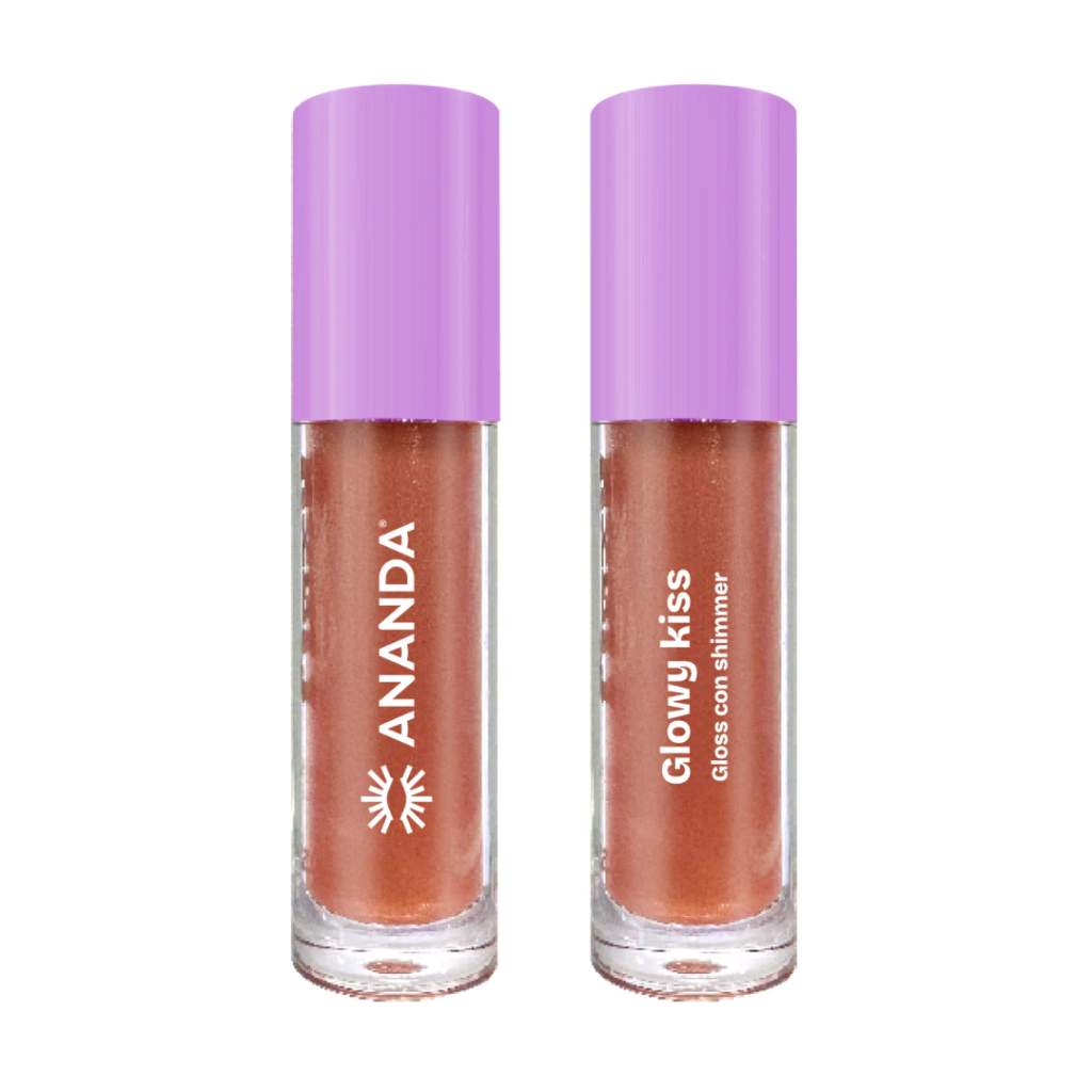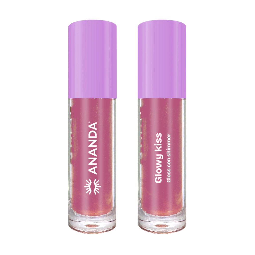 Gloss labial con shimmer Glowy Kiss Ananda Descubre el brillo intenso con destellos que transformará tu sonrisa. Este gloss labial cuenta con una fórmula hidratante y ligera que cuida tus labios mientras les da un acabado brillante y un efecto volumen instantáneo.